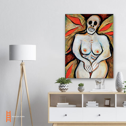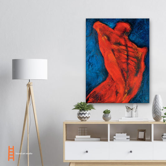 My original nude acrylic paintings are showcased in the Skin series.A hybrid of torture and beauty, color and haunting, these prints are compelling conversation-starters. My paintings depict the human body in various states of pain and suffering, yet the images also contain beauty and strength. The colors I utilize are vibrant, and the brushstrokes are bold.